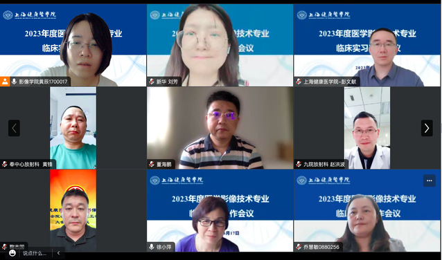 为进一步加强医学影像技术专业临床实践教学基地建设,落实并优化2024届临床实习工作,6月17日下午,医学影像学院在线召开2023年医学影像技术专业临床实习工作会议。医学影像学院院长徐小萍、党总支副书记乔慧敏、医学影像技术教研室主任彭文献、实习联系教师以及来自24家同质化实习基地的负责人、管理人员、带教老师代表参加会议,会议由徐小萍主持。