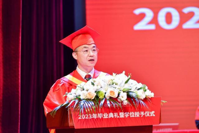 吴韬校长以“再回首,向前走:做一个坚定而温暖的健康人”为题,为毕业生上最后一堂课,他寄语毕业生们,要坚持做一个守正创新的厚德之人,严格遵守社会公德和职业道德,不断精进技能,用仁心推动社会的进步和发展;要坚持做一个胸怀天下的至善之人,在这个伟大的时代践行属于自己的光荣梦想,把个人奋斗融入到高质量发展的强国历史进程中;要坚持做一个自信自立的健行之人,用勇气、行动力、责任感和智慧突破无奈或困境,用平凡的肩膀担负起不凡的使命,用不屈的脊梁挺起中国美好的明天;要坚持做一个人民至上的康民之人,站稳人民立场、把握人民愿望、尊重人民创造、集中人民智慧,坚持以人民为中心的发展思想,学深悟透爱民、安民、康民的深刻内涵。鼓励毕业生们要以咬定青山不放松的执着,以行百里者半九十的清醒,面对一切机遇挑战坚定不移向前走,做一个坚定而温暖的健康人。