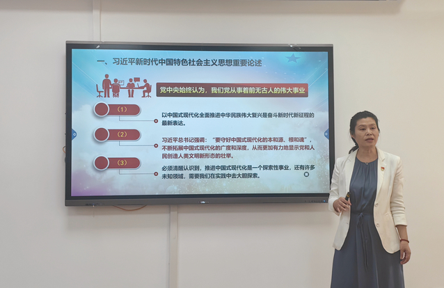 刘敏娟以习近平新时代中国特色社会主义思想为指引,带领全院教师学习中国式现代化建设的关键是人才,要坚持科技是第一生产力、人才是第一资源、创新是第一动力,深入实施科教兴国战略、人才强国战略、创新驱动发展战略。刘敏娟指出健康为中国式现代化的幸福感提供了坚实的保障,人民健康至上是中国式现代化的鲜明底色,健康优先发展是中国式现代化道路的重要内容。