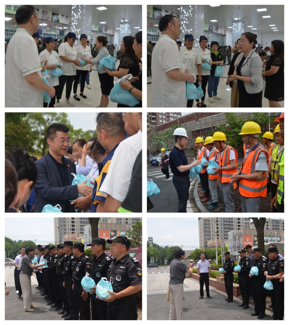 慰问现场,校领导与员工一一握手,并与相关职能部门负责人一起,亲手分发防暑物品,传递着对每一位员工的深深关怀和无尽感谢。校领导和员工交谈中再三叮嘱:安全第一,保重身体,学校的安宁、校园的整洁和美丽、师生的服务保障离不开你们!情真意切的慰问使员工们深受感动,纷纷表示一定守好学校一方平安、确保学校暑期的正常运作,不辜负领导的嘱托。