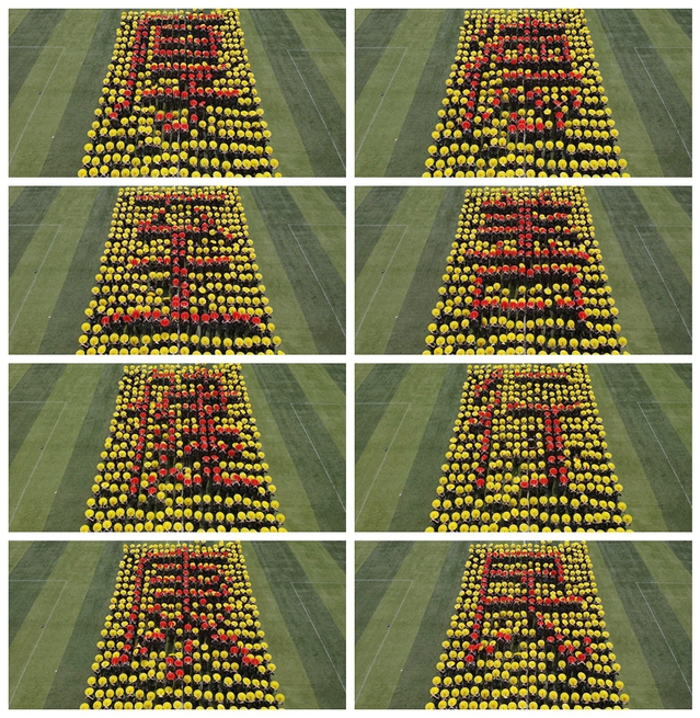 红旗招展豪迈激昂,步伐矫健英姿飒爽。旗语方阵由各连队选拔的144位女生组成。她们昂首挺胸,自信饱满,整齐的动作时刻体现着她们团结一心的精神,坚定不移的目光洋溢着她们的青春模样。
