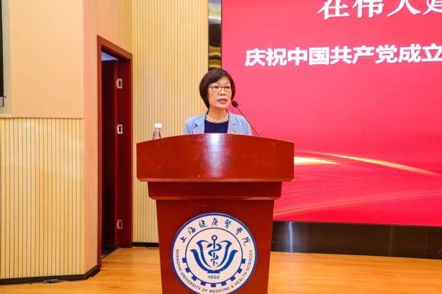 学校在发展过程中始终践行“健康促进”的办学使命,“健康人”始终坚守岗位,献身人民健康事业。在会上还有一批献身人民健康事业的各方代表通过视频与大家分享自身的心得体会、送上对党的祝福。援琼干部陈荣凤、援疆干部赵印懿两位“上健医”同志他们舍小家顾大家,在祖国最需要的地方绽放“上健医”精神,把援助经历分享给大家。