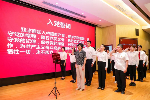 吴韬宣读今年学校上报获颁纪念章的8位老党员名单,校党委副书记、纪委书记李明磊为老同志代表颁发纪念章,校党委副书记、副校长唐红梅宣读了我校获教卫工作党委“标杆院系”“样板党支部”名单,校党委副书记于莹带领新党员师生代表进行庄严入党宣誓,现场全体党员重温入党誓词。