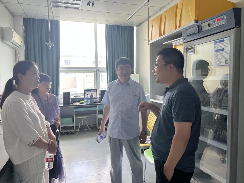 杨智昉一行先来到基础医学院创新实验中心,实地考察学生如何开展创新实验设计和实验操作。实验中心陈丹阳老师和庞玲霞老师介绍了各个实验室的基本功能、管理规范、使用流程、学生创新实验开展情况等。