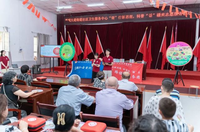 活动最后,校党委副书记、副校长唐红梅代表学校接受西域大道街道办事处、西域大道街道社区卫生服务中心赠与的锦旗,西域大道街道居民对团队高质量的科普服务和赠送的医疗急救包表示衷心的感谢。