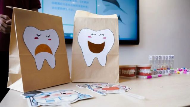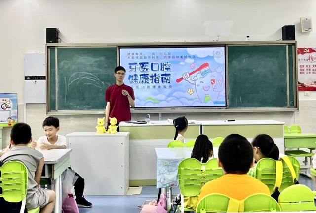 在宣讲的过程中,团队成员对健康牙齿进行了着重介绍,告诉孩子们应该如何判断自身的口腔健康状况。引导同学们举一反三,争当自我健康的啄木鸟医生,对自身的牙齿健康情况实现初步的检查。并且根据同学们反映的口腔小烦恼以及不理解的内容进行及时的解答,诸如“‘龅牙需要整牙吗?’‘牙齿需要如何美白?’‘长了两排牙齿怎么办?’”等问题进行简单回答,叮嘱同学们在日常生活中要爱护牙齿,养成好习惯。