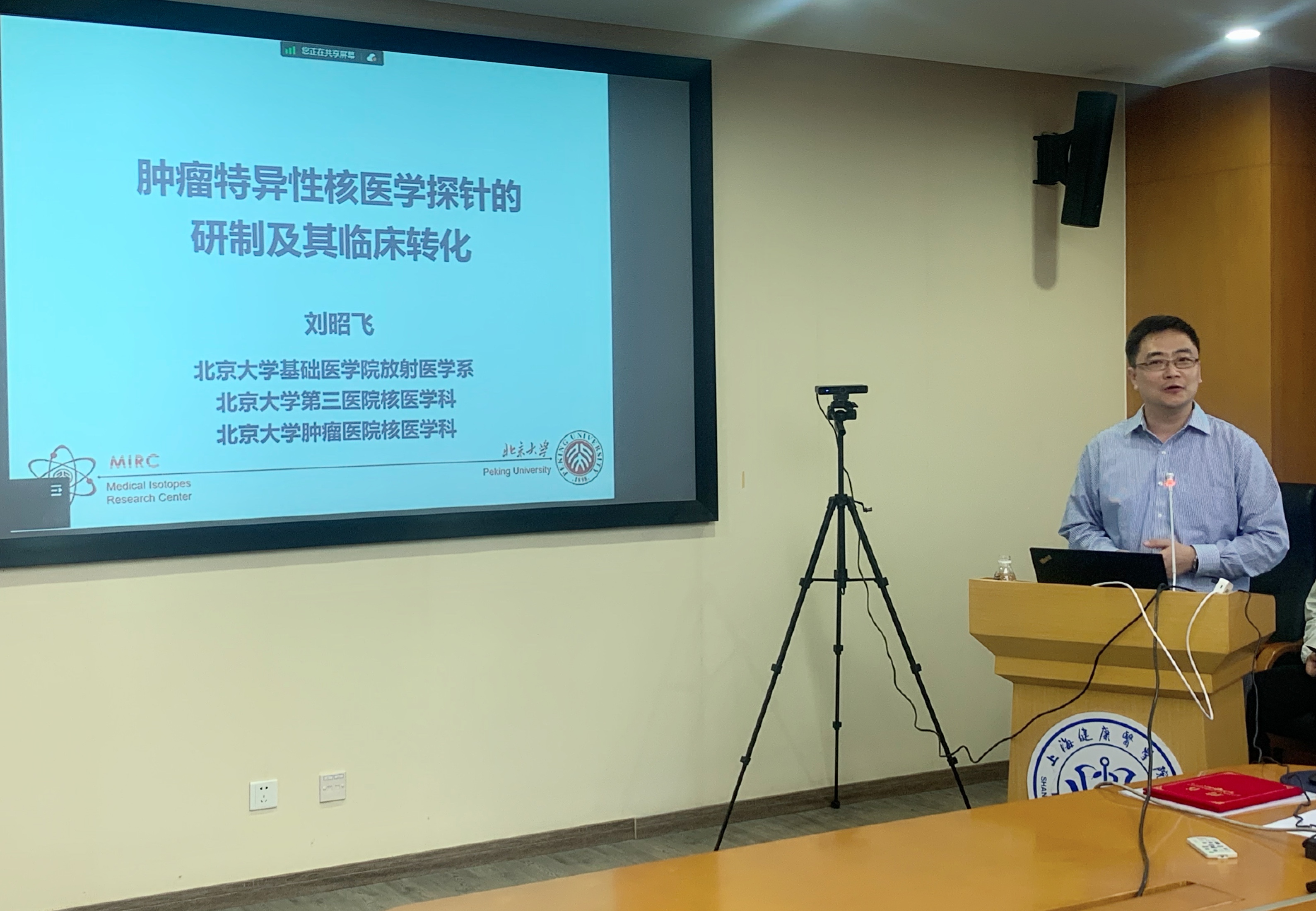 北京大学医学同位素研究中心刘昭飞教授作了题为“肿瘤特异性核医学探针的研制及其临床转化”的学术报告;复旦大学附属肿瘤医院宋少莉教授作了题为“创新引领—复肿核医学探针临床转化实践”的学术报告。两个报告给实验室未来发展,对实验室老师未来工作有很大的启发。