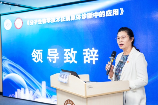 为期三天的培训班上,分别由上海健康医学院医学技术学院副院长李延飞、上海市江湾医院副院长解范迪、上海健康医学院医学技术学院副教授马琳琳、上海健康医学院医学技术学院副教授李钠以及上海即时检测医学工程技术研究中心主任/上海奥普生物医药股份有限公司联合创始人、党支部书记李福刚及其团队进行授课。专家们分别以“分子生物学技术的生物标志物靶向诊断”“分子生物学技术在病原体快速检测应用及质量控制”“高通量技术对病原体的临床检测和判断”“CRISPR/Cas技术对病原体超灵敏检测的应用和研究”“病原体检测‘医工结合’之路分子平台”为主题,围绕分子生物学技术在病原体诊断中的应用进行深入的讲解。