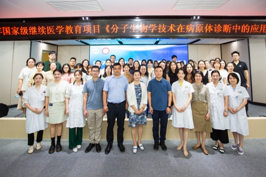 为落实《“健康中国2030”规划纲要》《国务院办公厅关于加快医学教育创新发展的指导意见》等文件精神,不断推进医学教育创新发展,提高从事分子生物研究方向专业人员的技术,深入推广“分子生物学技术在病原体诊断”的新技术,上海健康医学院主办、奉贤区南桥镇社区卫生服务中心承办的2023年国家级继续医学教育项目《分子生物学技术在病原体诊断中的应用》(项目编号:2023-11-01-235 (国))培训班于9月13日至15日在奉贤区南桥镇社区卫生服务中心成功举行。来自奉贤区中心医院、周浦医院、江湾医院、奉贤医疗机构等专业人员50余人参加。本次培训班着重介绍总结当前临床诊断中分子生物学检验技术的应用成果,融合介绍分子生物学最新技术在病原体筛查和诊断中的尝试、发展和研究,前沿临床研究过程中的空间转录组测序、DIA-MS、CRISPR/Cas技术、穿戴式诊断设备等新兴技术。
