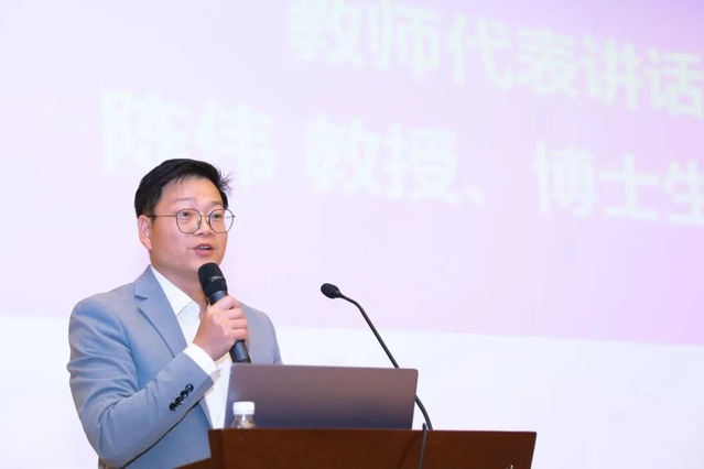 博士生导师,学院学科带头人陈伟教授以自身成长经历,阐述了提出问题、发现问题、解决问题的重要性。他鼓励同学们加入教师的科研创新团队,通过不断对知识进行有效的链接,形成自己的知识体系。