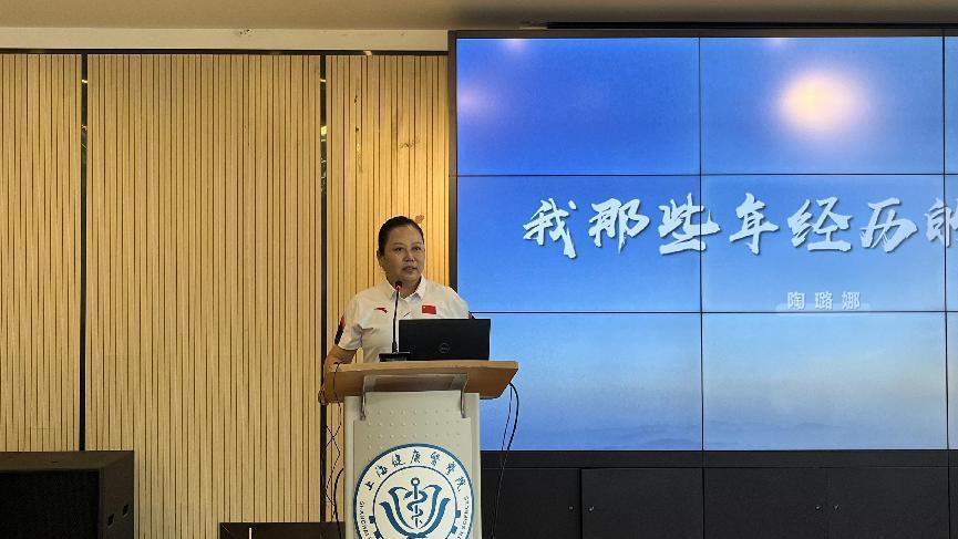 郭戎静首先对陶璐娜主任的到来表示了欢迎。她指出,青年是国家和民族的希望,建设体育强国,离不开青年的健康发展。身体健康是学习和工作的基础,拥有一个健康而活力的体质,才能去不断学习,快乐地生活,努力地工作,才能为社会、为人民做出贡献,而体育锻炼是促进身体健康最积极、最有效的手段。今天护管学院特别邀请国际级运动健将、奥运会冠军——陶璐娜女士来分享奥运故事和精彩人生,就是为了弘扬团结向上、自信乐观、不畏挑战、共迎美好的精神,激励青年学子积极参加体育锻炼,营造充满活力的体育文化氛围,努力构建学校“大思政”育人格局,助力青年医学生专业成长。