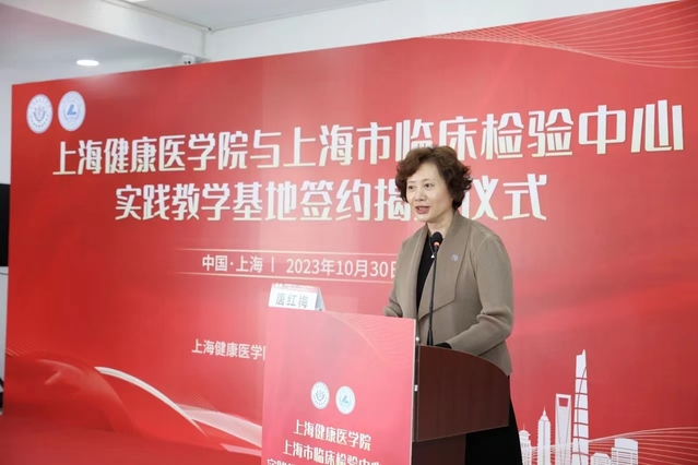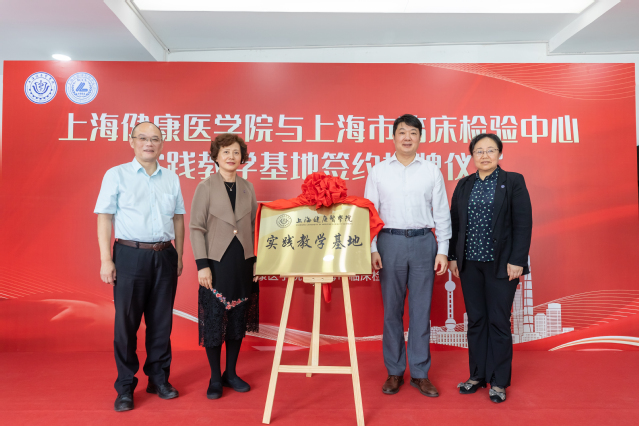 10月30日下午,我校与上海市临床检验中心实践教学基地签约揭牌仪式在上海市临床检验中心一楼大厅隆重举行。上海市卫生健康委员会副主任虞涛,上海健康医学院党委副书记、副校长唐红梅,上海市卫生健康委员会医政医管处处长吴宏、科教处副处长钱文卉,上海市临床检验中心党委书记何智纯、主任胡晓波,上海健康医学院教务处处长王莉、教务处副处长南德红、医学技术学院院长刘敏娟和学院党政班子、教师代表等出席。仪式由上海市临床检验中心副主任居漪主持。