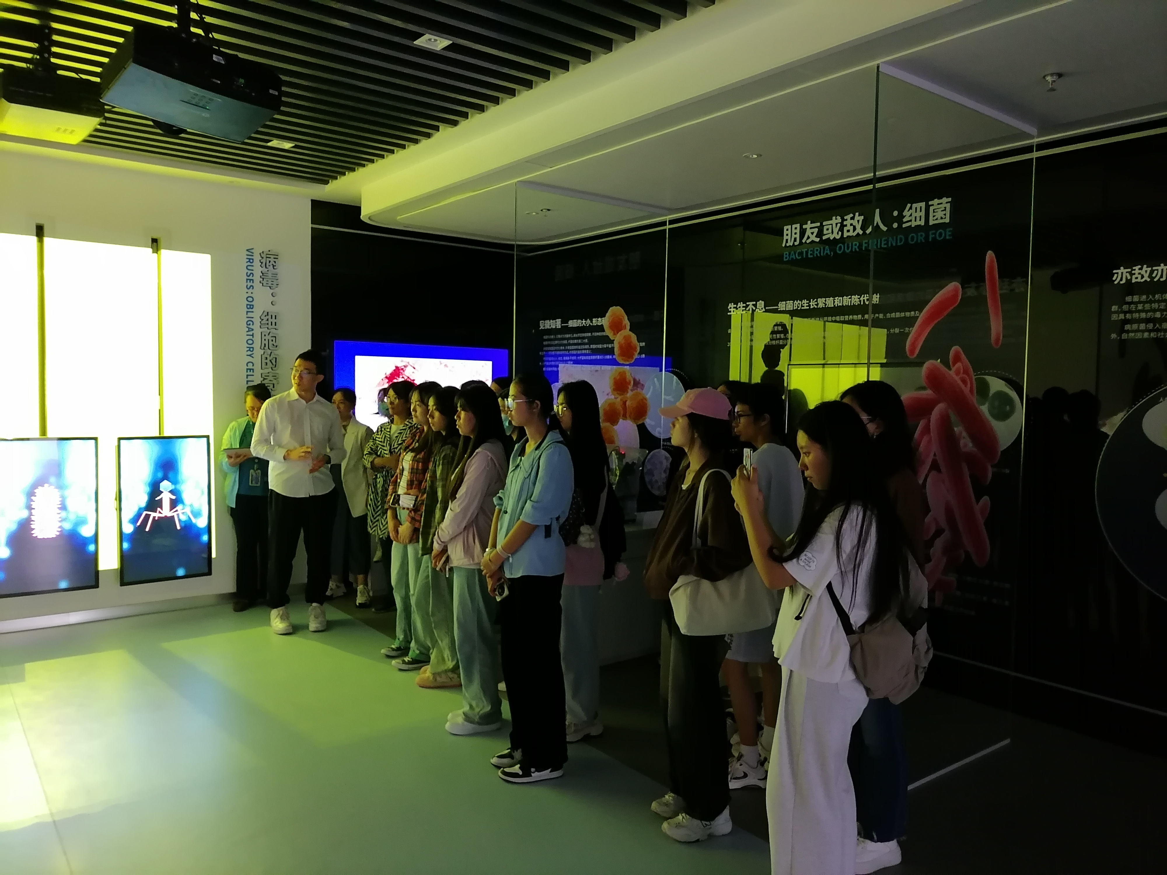 部分教师和预科班同学还参观了全国科学家精神教育基地——医学分子病毒学重点实验室(病原生物科学馆)。医学病毒学重点实验室(病原生物科学馆)共有天花(手臂)、肠蛔虫症、肺吸虫病、肠血吸虫病、肝包虫病等人体各种疾病的病理标本近3000件,按人体各系统、器官分类展示。跟随着讲解员,师生们依次参观了病理标本展出区、病理教学区和科普知识宣传区。大家满怀求知和探索的欲望,认真观看学习,感受和领悟一代又一代医学工作者在科研、防治重大传染病、抗击疫情等方面彰显的科学家精神。