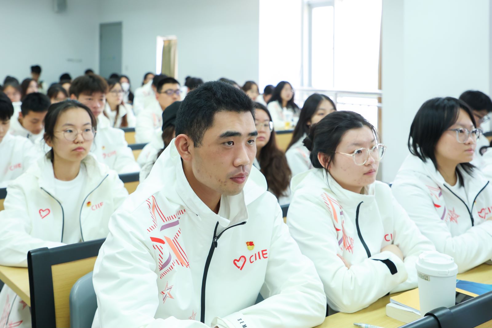 10月17日,第六届中国国际进口博览会志愿者上岗宣誓仪式暨志愿者临时党、团支部成立仪式在国家会展中心(上海)虹馆举行。我校100名健康”小叶子“们在响亮的誓言中宣誓上岗。