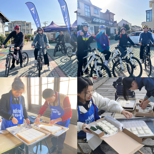 结束参观后,为深入探索中国式现代化的乡村振兴,辅导员们开展了“骑迹乡村”和“米糕制作”活动。海沈村骑行途中,自行车设计元素和骑行文化巧妙融合,无论是稻田间,还是道路旁,自行车元素的雕塑、装饰随处可见。辅导员们亲手制作米糕,在品尝美食的同时,传承地方传统文化,深厚的历史文化底蕴、美丽的自然风光与淳朴的乡村风情交相辉映,中国式现代化乡村振兴的气息迎面扑来,让大家充分感受到了日臻完善的基层治理让村民安居乐业,对新农村建设有了更深的了解与体验。