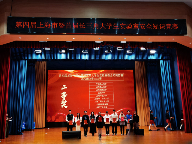 11月21日,由上海市教育委员会主办,2023“生乐杯”第四届上海市暨首届长三角大学生实验室安全知识竞赛总决赛在上海海洋大学举行,我校资产与设备管理处、药学院一行8人前往参赛。经过前期东北和西南两个区域赛比拼,此次总决赛共有复旦大学、上海应用技术大学、浙江中医药大学、上海海洋大学、华东理工大学等12所高校代表队晋级参赛,我校在区域赛中以第二名的成绩进入团体总决赛,药学院刘智丽同学进入个人总决赛。