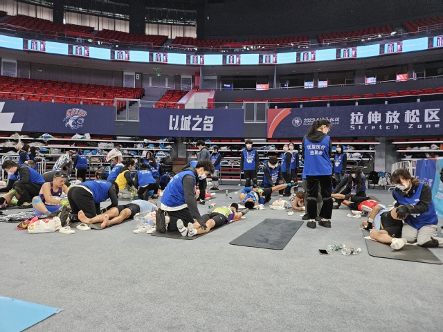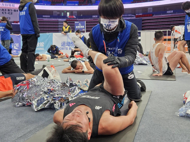 在上马终点站的赛后放松区,经历专业培训和数次练习后的康复学院志愿者同学们,以其高昂的工作热情,认真的工作态度以及专业的服务水平,成为比赛一道靓丽的风景线。志愿者们充分发挥专业优势,给予精疲力竭的参赛选手们系统性专业性的放松拉伸,获得了参赛选手的一致好评。有不少选手表示,多亏了志愿者们专业的拉伸服务,放松了紧绷的肌肉,缓解了赛后的疲惫,而志愿者们热情周到的服务态度也让他们感受到了比赛的温暖与力量。