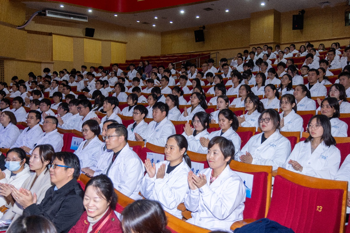 在白袍仪式上,老师们告诫我们要始终坚定医学的初心和使命,心系生命,志存高远;要努力学习,刻苦钻研,笃学精进;要不断追求医学知识的精益求精和探索精神,脚踏实地学好专业知识;要坚定信心、迎难而上,总结好前辈们走过的历程、取得的成就和宝贵经验,在前人的肩膀上目光向前,勇于攀登;要不断完善自我,做好生涯规划,踏实脚下,又心怀远方,用奋斗、拼搏、奉献书写青春华章,稳做国家临床医学事业里一颗牢固的“螺丝钉”。此次白袍仪式再次激起每一位医学生心中对医学事业的热爱与热情,也是我们每位学生成为一名真正医学生的见证!