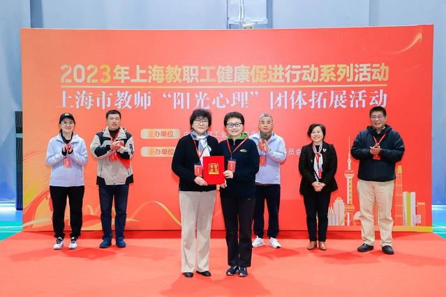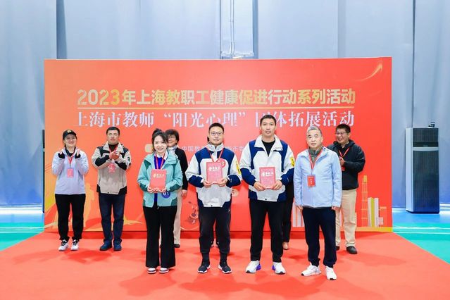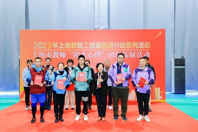 2023年11月25日,由上海市教育工会主办,上海健康医学院工会和上海市教师心理健康发展中心承办、上海健康医学院体育教学部、心理健康教育与咨询中心协办的2023年上海教职工健康促进行动系列活动暨上海市教师“阳光心理”团体拓展活动在上海健康医学院新南苑隆重举行。来自上海市长宁区教育工会、浦东新区教育工会、华东政法学院和上海大学的教师代表共计160人参加了活动。上海市教卫工作党委副书记、市教育工会主席张艳萍,上海健康医学院党委副书记、工会主席于莹,上海市教育工会副主席陶文捷等领导和嘉宾出席颁奖仪式,活动由上海市教师心理健康发展中心副主任王枫主持。