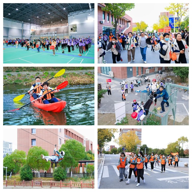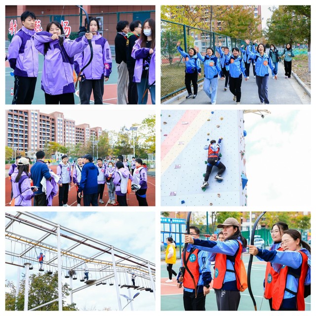 全体参加活动的老师在上海健康医学院体育教学部老师的指导下,分成8组在户外完成了攀岩、射箭、溜索过河、勇敢者步道和平台舟共五项拓展活动,努力发挥身体运动和团体活动对心理健康的促进功能和以体强心、以群健心的作用。活动中老师们踊跃尝试各种高难度的户外活动,大家积极进取、敢于挑战、勇往直前、团结协作,充分体现了新时代上海教师永不言败、争创一流的精神风貌。