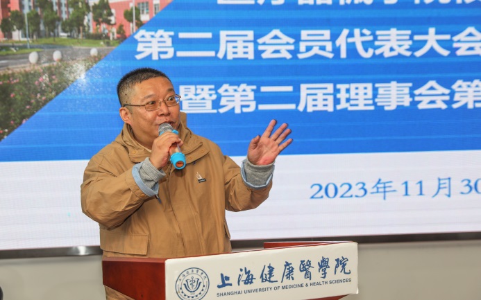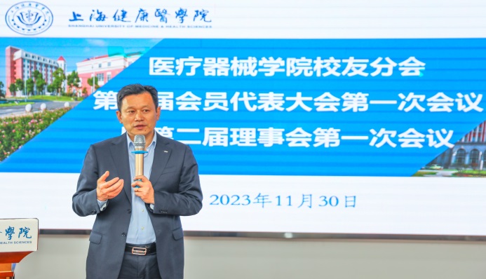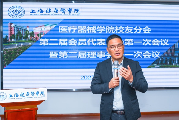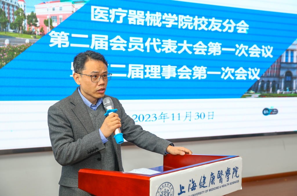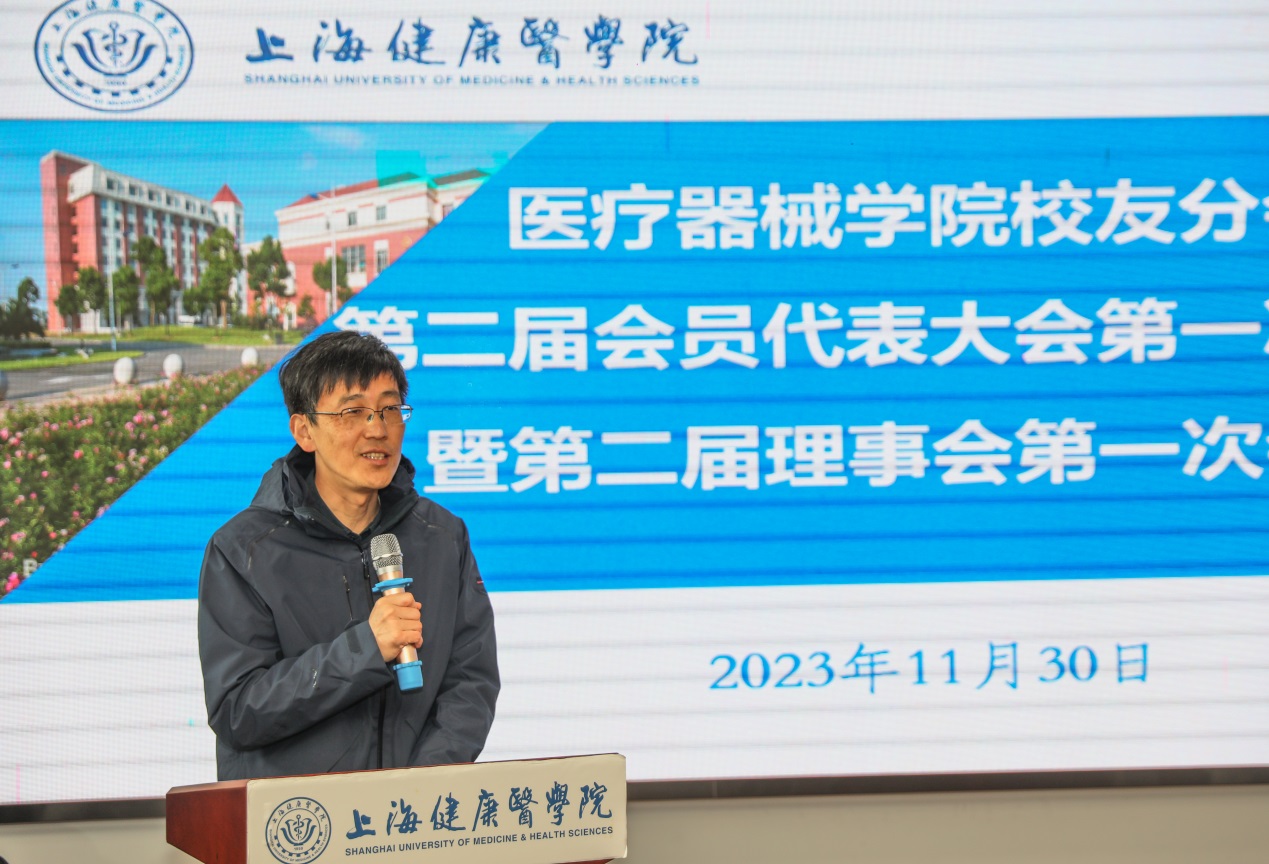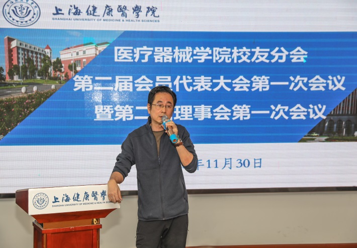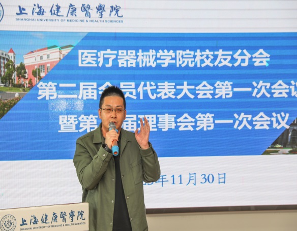 首先,由上海健康医学院校友会医疗器械学院分会第一届理事徐军对第一届校友分会的工作作了汇报。他表示,校友会的宗旨是服务校友,做好校友的返校接待工作,同时和校友建立起良好的联络机制,积极推动学院和学校的各项发展工作,在校友的大力支持下,医疗器械学院的各项工作始终在学校都居于前列。