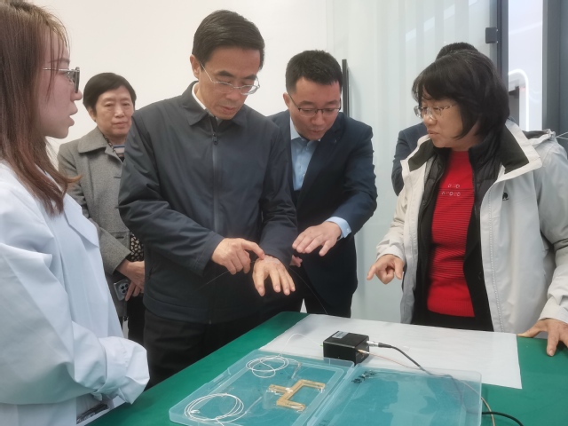 程凯主席一行首先饶有兴致地参观了我校康复实训中心和上海市智能医疗器械与主动健康协同创新中心,对于学校应用型、特色性、国际化的办学理念给予了高度肯定,体验了康复实训中心和协同创新中心的器材和设备,对于康复学院学科建设、教材建设、科研和社会服务进行了详细了解;对于协同创新中心成立两年来在医工融合发展、交叉学科创新、复合型人才培养、国际技术转移、跨境孵化服务以及应用示范推广等方面所取得的显著成绩给予充分肯定。尤其是学校青年师生勇攀科研高峰的精神给其留下深刻印象,他鼓励师生在促进科技自立自强的道路上再创新功。