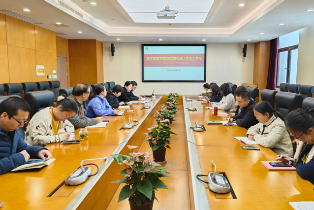 为贯彻落实党的二十大精神,深入学习贯彻习近平新时代中国特色社会主义思想,11月30日下午,医学影像学院党总支在南苑仁影楼306会议室开展习近平文化思想专题学习,会议由党总支书记朱清主持,党总支宣传委员、专职组织员谭松珊担任领学。