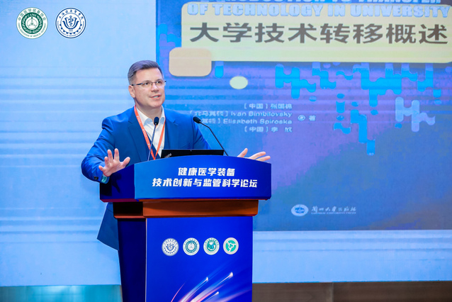 北马其顿圣保罗信息科学与技术大学校长Ivan Bimbilovski就生物医药领域的法律问题作了精彩报告,他重点探讨了患者的选择权、生物医药技术成果转化中的知识产权保护等内容。同时,他对和上海健康医学院的国际合作寄予厚望。