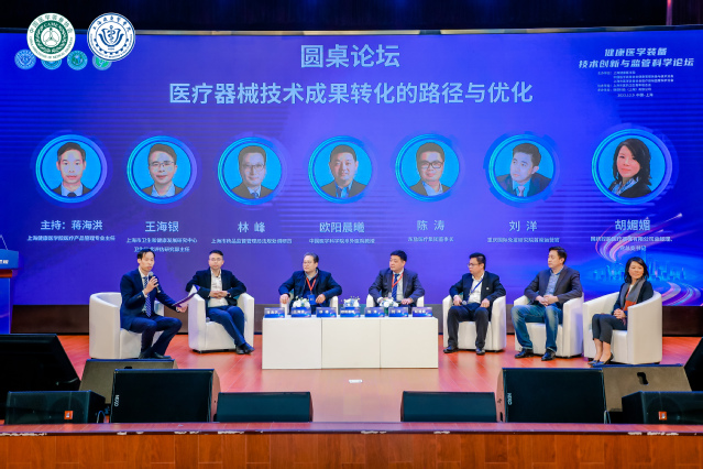 12月9日下午的论坛设置了两场圆桌讨论环节,首场圆桌讨论围绕医疗器械技术成果转化的路径与优化这一主题展开。上海市卫生和健康发展研究中心卫生技术评估研究部主任王海银、上海市药品监督管理局法规处二级调研员林峰、中国医学科学院阜外医院教授欧阳晨曦、国药控股医疗器械有限公司总经理胡媚媚、江苏东劢医疗集团董事长陈涛、重庆国际免疫研究院首席运营官刘洋6位来自监管部门、医疗机构和行业企业的专家围绕当前医疗器械技术成果转化存在的问题展开了讨论,他们的真知灼见引起了与会代表的强烈共鸣。
