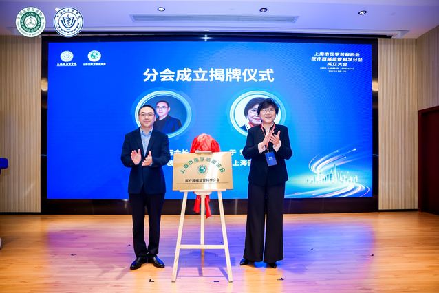 理事会会议后,上海市医学装备协会执行会长杨云宣读了《关于同意上海市医学装备协会医疗器械监管科学分会选举结果的批复》,宣告上海市医学装备协会医疗器械监管科学分会正式成立。上海健康医学院党委副书记于莹和上海市医学装备协会执行会长杨云共同为分会成立揭牌。