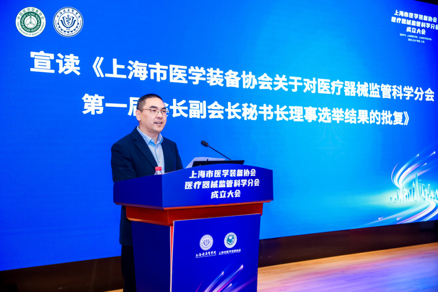 成立大会由上海市医学装备协会副秘书长雍娇女士主持,上海市医学装备协会执行会长杨云首先宣读了《关于同意筹备上海市医学装备协会医疗器械监管科学分会的批复》,全体委员听取、审议、通过了《上海市医学装备协会医疗器械监管科学分会工作规程》、《上海市医学装备协会医疗器械监管科学分会第一届会长、副会长、秘书长、理事选举办法》、《上海市医学装备协会医疗器械监管科学分会(筹)总监票人、监票人及产生情况说明》后,选举出第一届理事会全体理事。
