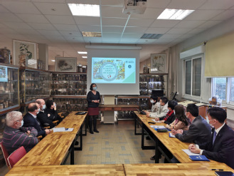 交流研讨会结束后,访问团参观了草药标本馆。蒙大教授特意向访问团展示了中国草药展区,其中,展台面上标注着中文名称的草药标本特别引人注目。教授介绍,由于法国教师不认识中文,导致无法对这些来自中国的草药进行鉴定,而前几年我校去蒙大游学学生正好弥补了这一遗憾,先后为草药馆鉴定了几十个品种,丰富了草药馆的藏品,为草药馆建设做出了贡献。