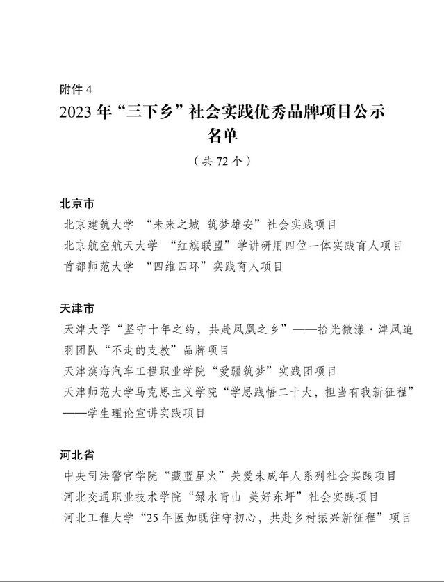 2023年全国大中专学生志愿者暑期文化科技卫生“三下乡”社会实践活动“优秀品牌项目”名单
