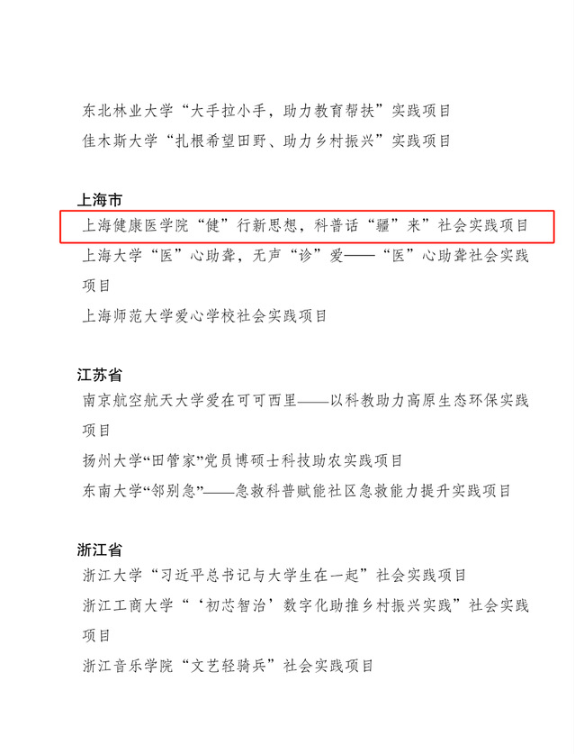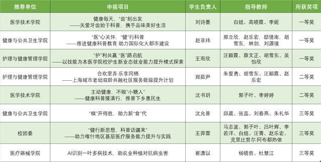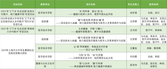 (2023年上海市“知行杯”一等奖;2023年上海市大中学生暑期社会实践全国重点团队;入围2023 年“三下乡”社会实践“投身乡村振兴,助力健康中国”专项活动)