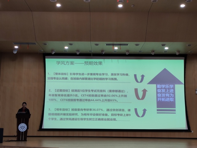 坚持“三全育人”,建立全员协同育人机制,将专业课教师、班导师、辅导员等纳入育人主体,推动部门间、校企间的有机联动。学风建设月活动中,开展2023级新生班导师聘任仪式,结合学院专业特色和师生特点,推进班导师进班级,开展专业学习、职业规划等方面的活动。同时,为提升班级管理水平,发挥辅导员在学风引导上的重要作用,药学院开展“班级学风建设方案”比赛,16个在校班级均参与初赛,通过评审打分,6个班级进入决赛展示;决赛中,带班辅导员亲自上场,从学情分析、学风现状、学风方案介绍、实施计划、预期效果五方面充分展示各班学风建设方案,评选出优秀建设方案供其他班级参考推广。