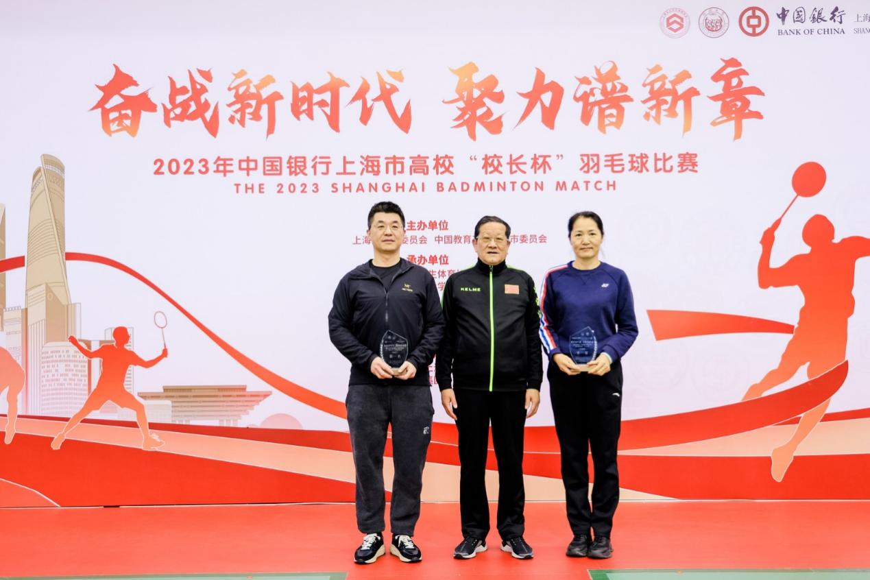我校派出了由体育教学部主任王洪彪任领队,校长吴韬,副校长汤磊,原副校长沈国芳为队员,杨紫嫣、李瑾为教练的代表队参赛,并取得了良好成绩。吴韬校长与上海体育大学杨玲副书记搭档混双,三战全胜,勇夺冠军。汤磊副校长与沈国芳副校长搭档男双,小组赛三胜一负,最后取得第五名的好成绩。
