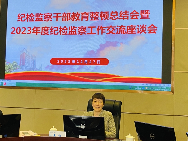 12月27日上午,学校纪委在北苑1号楼110会议室召开纪检监察干部教育整顿总结会暨2023年度纪检监察工作交流座谈会。全体校纪委委员、各二级院部和附属卫校纪检监察工作负责人、机关党总支纪检委员、直属党支部纪检委员以及纪委办公室巡察办公室全体成员参加会议。校党委副书记、纪委书记、监察专员高红出席并讲话。