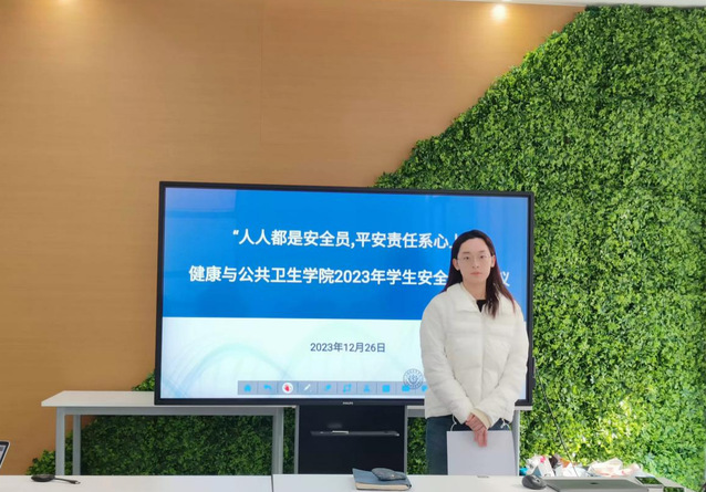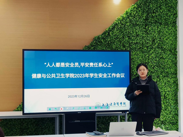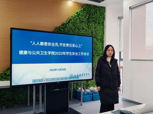 为深入贯彻落实习近平总书记关于安全生产重要指示精神,根据教育部、上海市教委及学校下达关于进一步加强岁末年初校园安全工作通知要求,12月26日上午,健康与公共卫生学院召开“人人都是安全员,平安责任系心上”2023年学生安全工作会议。学院党总支书记顾斐雯、学生工作负责人何双泉老师、辅导员赵乐宏老师、姚俊阁老师,全体学生党员、自管会学生干部、各班班长、团支书、心理委员、生活委员、寝室长代表、全体毕业班同学(线上)参加会议。由赵乐宏老师主持。