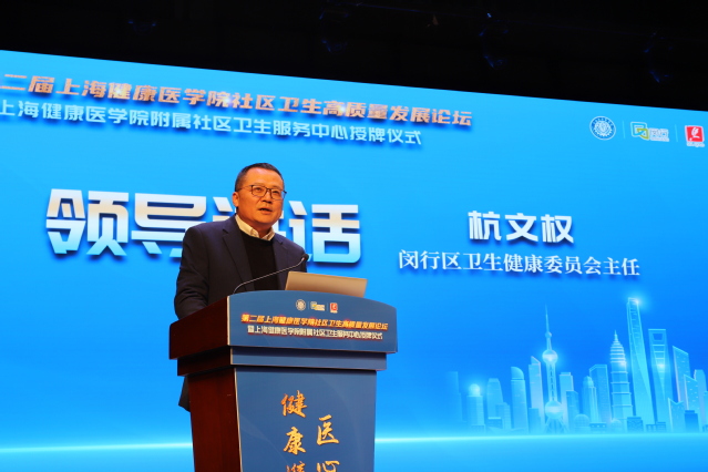 杭文权代表闵行区卫健委致辞。他表示,未来4所附属社区卫生服务中心将在学校的带领下,以创促建、以建提质,在人才培养、医学教育、科研创新、成果转化等领域建立更加紧密的协同联动机制,夯实社区卫生服务能力基底。