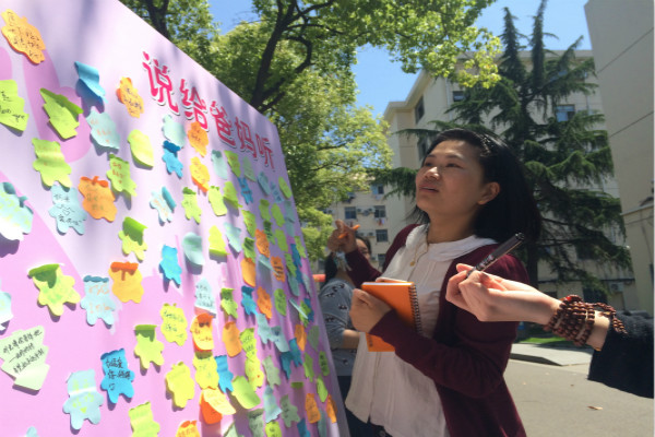 5月12日中午12点,护理系学生分会的成员们早早的就来到了校园的林荫大道上,组织开展了感恩父母签名寄语活动。走过路过的师生们热情参与。不一会儿,“说给爸妈听”的展板上就密密麻麻地贴满了同学们、老师们想说的话,有的希望父母身体健康,有的说出藏在心底的爱语,有的祝愿妈妈永远年轻......签名寄语的同时,也进行了采访,一位老师被问到对于举办“浓情5月,感恩母爱”签名寄语活动的看法,她表示很赞同,她说到:平时生活太忙碌,没有机会去表达对家人的爱,通过这个方法,可以让我写出对妈妈的爱意,让我对妈妈辛苦的付出表示感谢。知恩图报,善莫大焉!