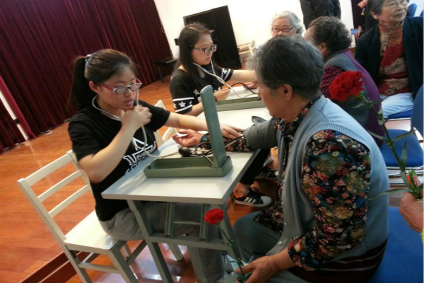 “老吾老以及人之老”。母亲节的意义在于孝老敬亲,学会感恩。为社会发展奉献出无悔青春的老人们,同样值得青年学子的敬仰。为了学会推己及人,5月14日下午3点,14级护理4、5、6班的班长带领同学们一起去学校附近的上海第二福利院志愿敬老,传递温暖。同学们合唱了老人们熟悉的歌曲《映山红》、《感恩的心》,表演了体育课学习的功夫扇,演出了走心小品《孝心无价》;还发挥护生特长,拿出自带的血压计,给老人们测量血压,讲解高血压预防常识;同学们通过热情地陪老人聊天,用心倾听过去的故事,从老人口中感受到了祖国的发展变化,悟出了为人处世的人生道理……平日里大多静寂的敬老院,因同学们的到来,而多了欢声笑语,感恩之情在空气中蔓延。