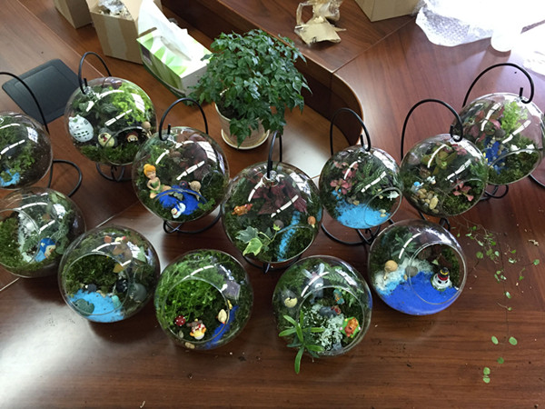 将绿色带进工作,用绿色美化生活,学校通过开展师生热衷参与的活动,倡导绿色健康的生活方式。杨浦校区工会在机关职能部门开展“微景观”创意DIY活动,用苔藓、砂石等材料,搭配网纹草、袖珍椰子、小房子、小动物等各种有趣玩偶,借助镊子、喷壶等工具,创作出一款款独一无二的瓶中小天地,用亲近自然的手工制品缓解日常工作的疲劳。“微景观”制作,凝聚了无限创意与生活情趣,在方寸之间开辟出一个充满温情与自然气息的花草世界,使大家在繁忙的工作之余感受到一份简单和宁静。