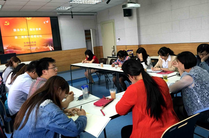 论坛伊始,生物医药系党支部负责人首先就本期论坛的目的作了说明,希望通过青年思想论坛这个平台,让青年教师了解党的最新理论动态,在思想交流与碰撞中产生智慧的火花,做好学生的思想引领工作。论坛上,徐汇校区学工部门负责人从党的理论热点谈起,论述了“三严三实”的意义、内涵和要求,传达了上海健康医学院党委书记郑沈芳作的党课主题报告,认为抓好干部的作风建设,才能更好的带动校风、学风、教风,要求在深化学习上下功夫,学习党章,与学校实际相结合;在具体工作上要坚持从严要求、以上率下、注重讲求实效。结合徐汇校区学工部门负责人对“三严三实”理论内容的分享,方中坚老师用一个亲身案例来阐释“三严三实”中“做事要实”这一具体内涵,他从参加“服务社会、投身公益事业”的项目入手,讲到对西部小学开展“午餐计划”、“爱心小药箱”、接力棒支教等活动,踏踏实实的对贫困山区教育事业尽自己一份绵薄之力,回归到自身教学实践中就是要把工作做实。之后,各位老师和入党积极分子也踊跃参与了讨论。