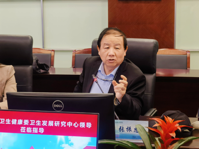 张振忠对学校的热情接待表示感谢。张振忠介绍了国家卫生健康委卫生发展研究中心智库建设历程,并就学校智库建设方向、错位发展策略等提出了建设性建议。