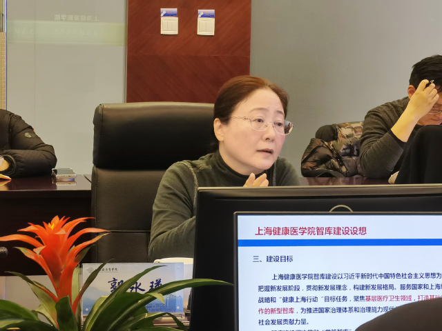 郭永瑾对张振忠一行的莅临表示热烈欢迎,并介绍了学校智库建设情况。她表示,学校公共卫生和健康领域政策研究、健康系列蓝皮书等为智库建设奠定了基础,学校智库建设将紧密围绕办学定位和禀赋优势,从社区养老和慢病管理、社区卫生机构管理运营、区域性医疗机构建设等方向进行探索,建设有特色的健康智库。