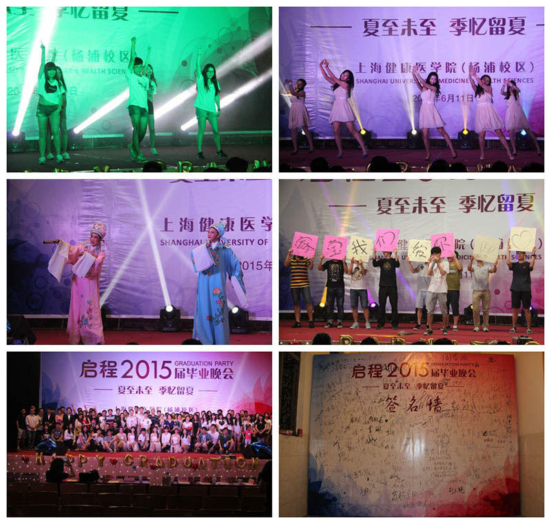 夏至未至,季忆留夏。611日晚,以“启程——夏至未至,季忆留夏”为主题的上海健康医学院杨浦校区2015届毕业晚会在大礼堂圆满举行。原杨浦校区领导江孝渔、傅志中出席晚会。杨浦校区、徐汇校区、浦东校区共计1000余名师生观看了晚会。