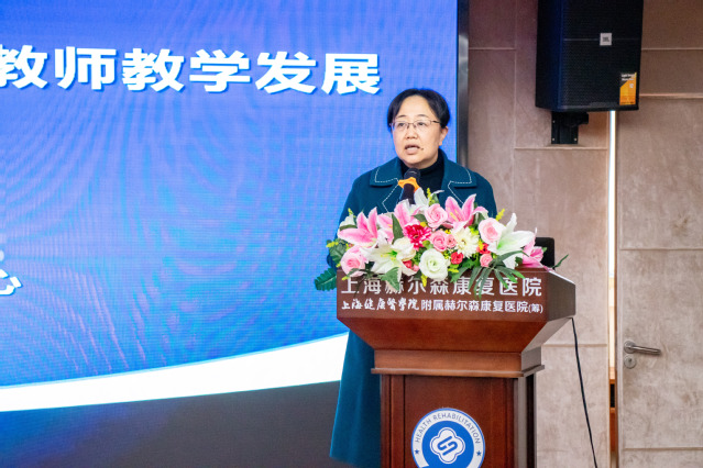 汤磊代表学校对参训学员表示欢迎,对上海健康医学院教育发展基金会和上海赫尔森康复医院的大力支持表示感谢。随着学校附属医院、附属社区卫生服务中心建设工作不断深入,以及“校-院”一体化高质量发展重点工作的推进落实,师资队伍培养成为学校全面深化高等教育综合改革服务的一项重要举措。以临床兼职师资队伍教学能力提升作为开年第一课,凸显了学校对于人才的重视。他希望大家努力学习、学以致用、用以促学、学用相长、知行合一,携手为建设高水平、全健康、国际化应用技术型医学院校而努力,共同为医学教育事业高质量发展贡献力量。