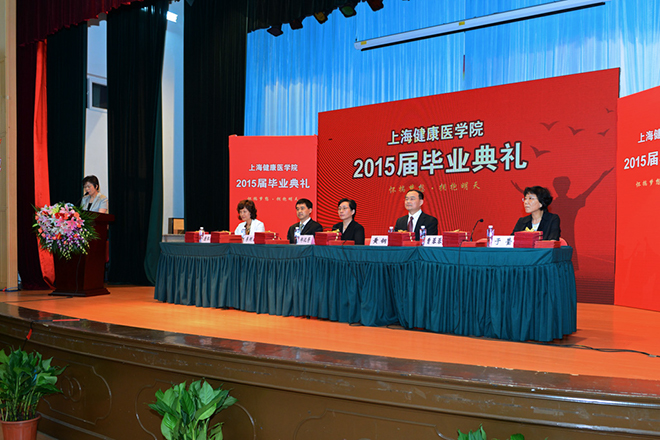 数载寒暑,几度春秋,上海健康医学院的首届毕业生即将离开母校,站在人生新的起跑线上,开始新的征程。7月6日下午1:00,上海健康医学徐汇校区2015届毕业典礼在校区大礼堂隆重举行。上海健康医学院党委书记郑沈芳、校长黄钢、党委副书记李明磊、副校长曹蓉蓉、唐红梅、于莹出席毕业典礼。徐汇校区各部门负责人、毕业生家长代表、校友代表、教师代表与徐汇校区2015届全体毕业生一同出席典礼。毕业典礼由曹蓉蓉副校长主持。