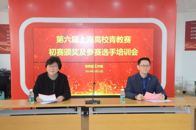 1月11日,由校青教赛工作组主办的“第六届上海高校青教赛初赛颁奖及参赛选手培训会”在北苑1号楼500会议室举行。校党委副书记、工会主席于莹,副校长汤磊,工会常务副主席凌文惠,教务处处长、教师发展中心主任王莉,教师工作部部长李兆伟,人事处处长郑学文、各学院及教学部分管教学院长、第六届上海高校青教赛学校初赛参赛选手、各学院教学部青年教师代表30余人参加了培训会。会议由凌文惠主持。