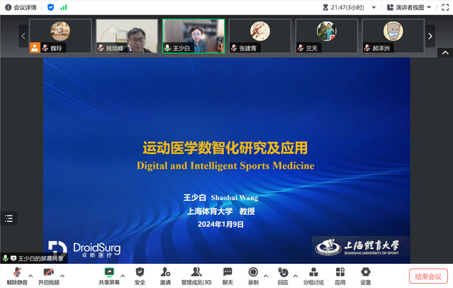 1月9日晚,医学影像学院邀请上海体育大学王少白教授在线开展学术交流,学院教师和研究生参加本次活动,副院长姚旭峰教授主持活动。
